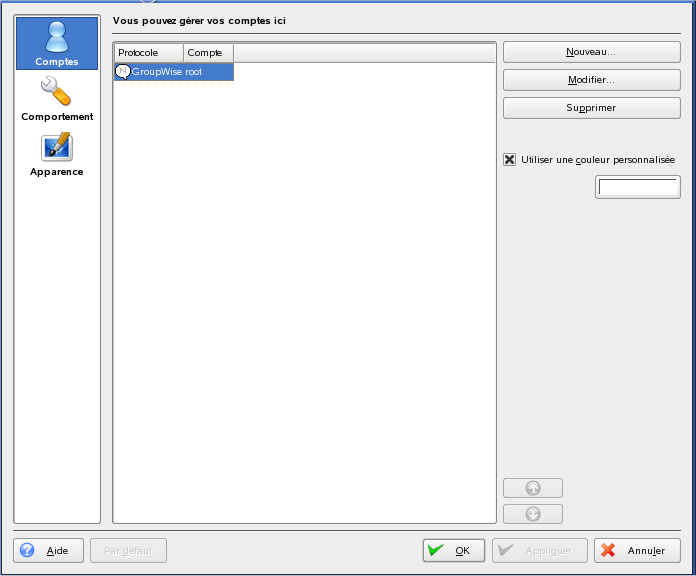 Figure 7-1 Tableaux de bord de configuration de Kopete