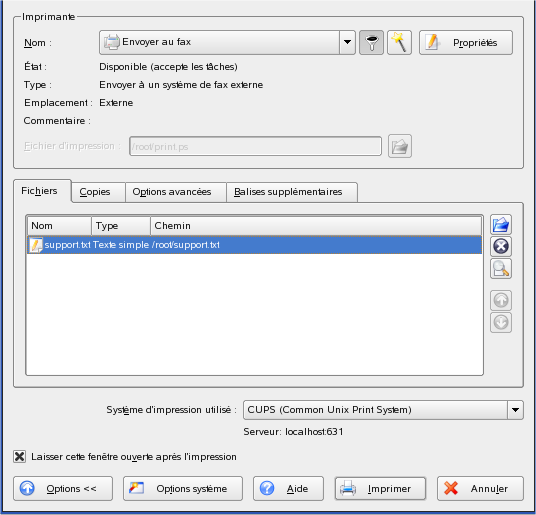 Figure 12-2 Démarrage d'une tâche d'impression avec KPrinter