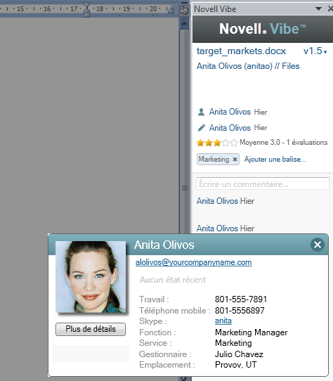 Pour modifier un document de manière collaborative avec Novell Vibe Add-in :