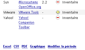 Normes logicielles : affiche les produits découverts avec leur catégorie de normes.