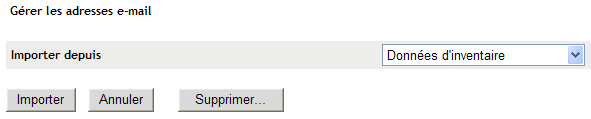 Si vous sélectionnez , l'importation porte sur les adresses électroniques obtenues lors d'un scanner d'inventaire.