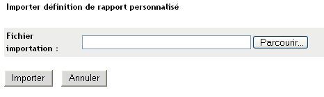 Si vous avez défini des rapports dans ZENworks Asset Management 7.5, vous pouvez les importer dans le Centre de contrôle ZENworks. Vous pouvez également réimporter les rapports qui ont été exportés depuis le Centre de contrôle ZENworks. Un format XML prédéfini est nécessaire pour l'importation.