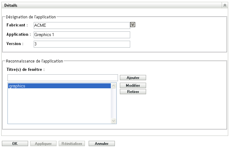 ZENworks Asset Management permet également de contrôler l'utilisation des applications Web. Vous devez avant tout définir les applications Web. Vous pourrez ensuite utiliser les rapports du dossier Applications Web à la page Utilisation des logiciels pour effectuer un suivi de l'utilisation. Le volet Applications Web affiche les informations suivantes :