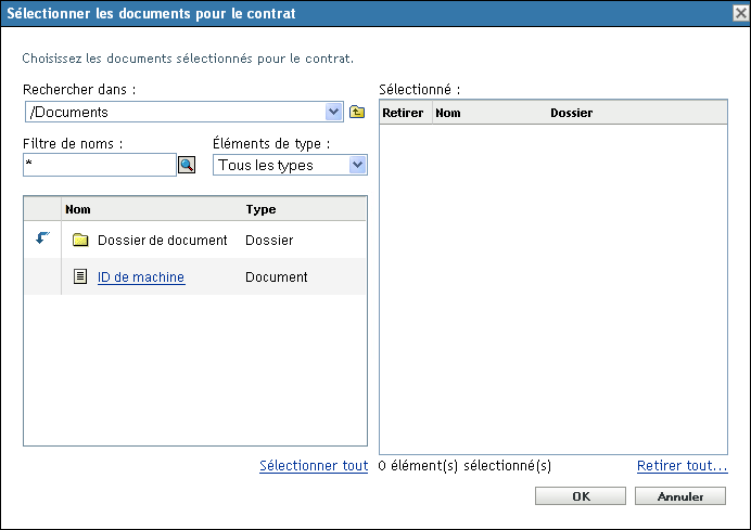 Dans la boîte de dialogue, sélectionnez un document puis cliquez sur .