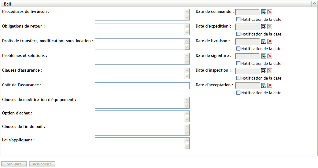 L'onglet affiche les détails de location et vous permet de les modifier. Spécifiez les valeurs dans les divers champs. Cliquez sur l'icône du calendrier pour sélectionner une date. Sélectionnez pour envoyer des notifications par message électronique. Cliquez sur pour enregistrer les modifications.