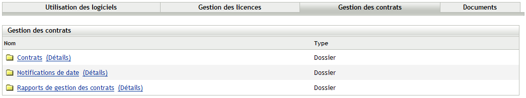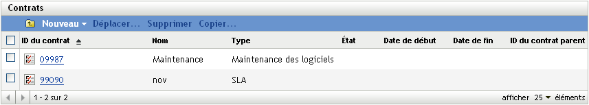Cliquez sur un contrat existant pour ouvrir la page Contrats.