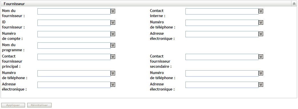 L'onglet contient des informations sur le fournisseur. Il a été créé avec l'assistant Créer un nouveau contrat. Vous pouvez modifier ces champs directement.
