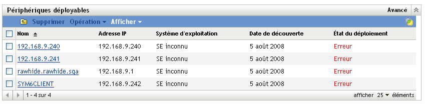 Figure 1-2 Panneau Périphériques déployables (onglet Déploiement)