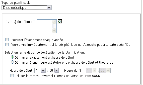 Date spécifique : le Formulaire de données de collecte est déployé aux dates spécifiées. Reportez-vous à Date spécifique.