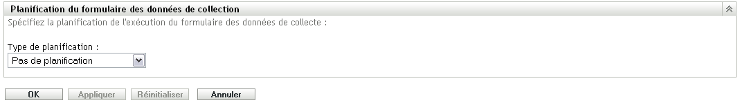 Dans le champ , sélectionnez le type de planification que vous voulez utiliser pour envoyer le Formulaire de données de collecte. Les options que vous pouvez sélectionner sont les suivantes :