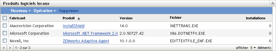 Si le panneau Produits logiciels locaux contient plusieurs fichiers identifiant le même produit, vous pouvez les consolider en un seul fichier.
