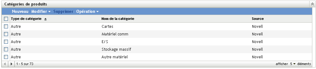 Figure 10-2 Panneau Catégories de produits