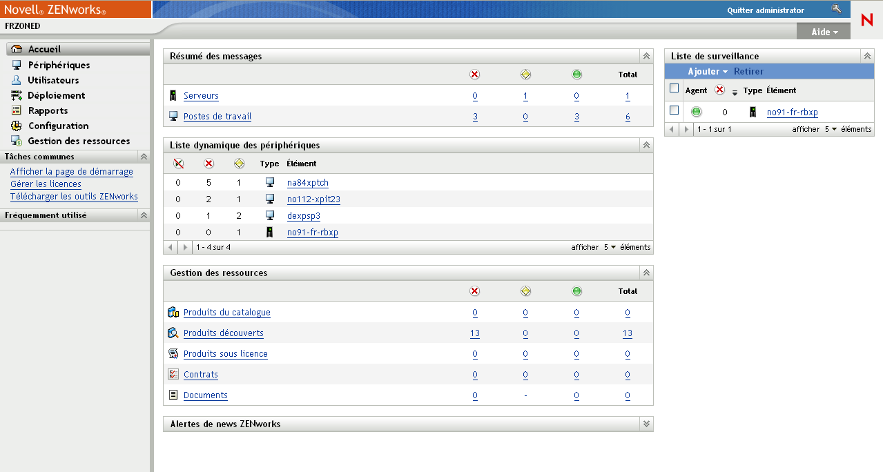 Dans le Centre de contrôle ZENworks, cliquez sur l'onglet .