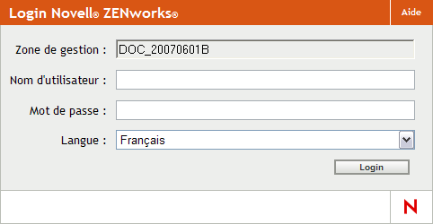 Dans le champ , saisissez Administrateur (par défaut) ou un nom d'administrateur que vous avez créé précédemment dans le Centre de contrôle ZENworks.