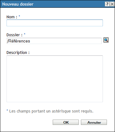 Dans le tableau de bord Coffre-fort de références, cliquez sur > pour afficher la boîte de dialogue Nouveau dossier.