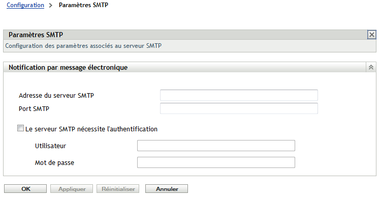 Le SMTP doit être configuré pour que la notification par messagerie électronique des étapes fonctionne.