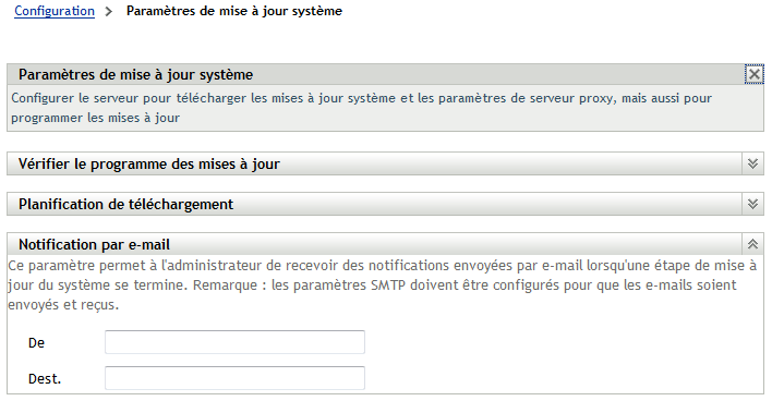Lorsqu'une mise à jour a été vérifiée et lorsque ses informations sont affichées dans le panneau Mises à jour système disponibles de l'onglet , vous pouvez automatiser le téléchargement à partir de Novell lorsque la planification se déclenche.