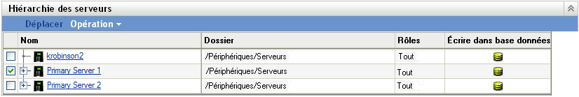 Dans le panneau Hiérarchie des serveurs, cochez la case en regard du serveur primaire désiré.