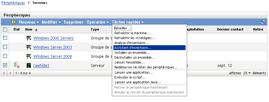 REMARQUE :cette fonction n'est disponible que si l'option est sélectionnée dans la page de configuration de l'inventaire. Pour plus d'informations, reportez-vous à la Section 2.1, Configuration d'une analyse d'inventaire.