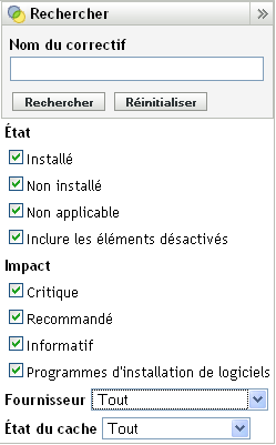 Mettre à jour le cache : lance un processus de téléchargement pour les ensembles associés au correctif sélectionné et met en cache ces ensembles sur votre serveur ZENworks.