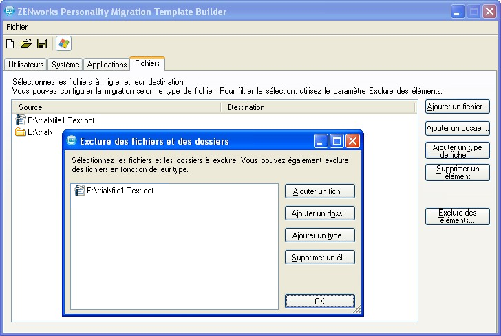 Ajouter des fichiers : cliquez sur , puis sélectionnez les fichiers à exclure de la migration.