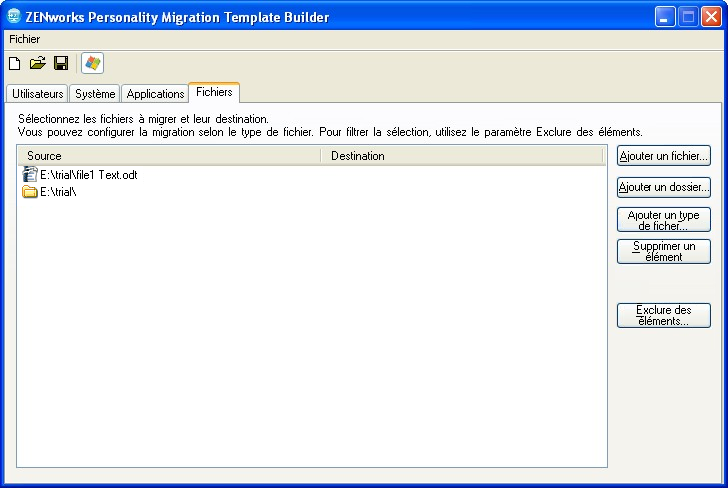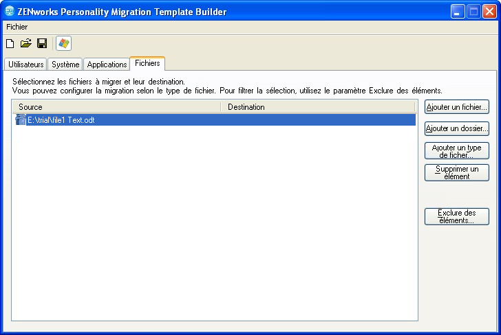 Un modèle se compose d'un fichier XML qui peut être lu et édité avec n'importe quel éditeur. Cependant, utiliser le générateur de modèles pour ZENworks Personality Migration est un moyen pratique de générer des modèles personnalisés pour les migrations, de façon à disposer d'une migration standardisée et cohérente dans une entreprise. Vous pouvez créer des modèles à l'aide du générateur de modèles.