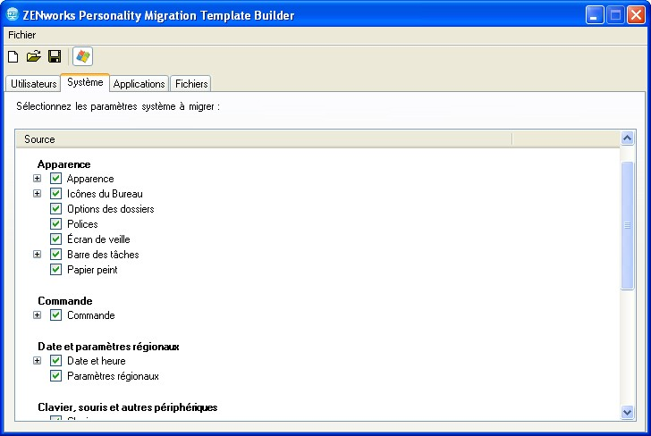 les mêmes applications de la même version : permet de faire migrer les paramètres entre des applications de version identique (par ex. depuis Microsoft Office 2003 vers Microsoft Office 2003).