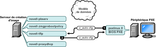 Le serveur TFTP envoie le fichier z_auto.cfg pour ZENworks Imaging et winpe.cfg pour ZENworks Third-Party Imaging.