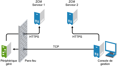 Le port sur lequel le module d'écoute de gestion à distance écoute les connexions distantes doit être ouvert dans le pare-feu de la console de gestion. Le numéro de port par défaut est 5550.