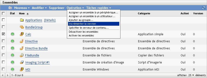 L'incrémentation du numéro de version d'un ensemble génère son redéploiement vers les périphériques gérés et sa copie vers les serveurs de contenu.