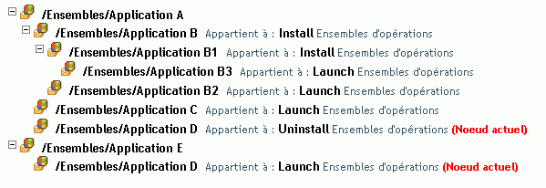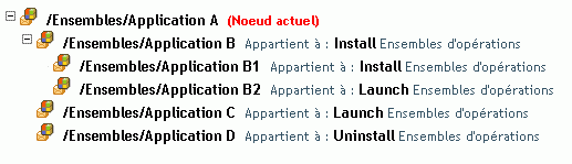 De plus, un ensemble peut être à la fois un ensemble principal et un ensemble dépendant, comme illustré ci-après. Application A désignée comme ensemble principal avec les applications B, B1, B2, C et D désignées comme ensembles dépendants.