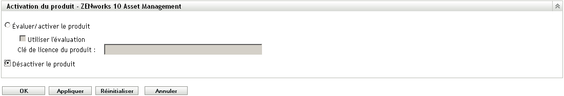 Dans le panneau Activation du produit, sélectionnez l'option .