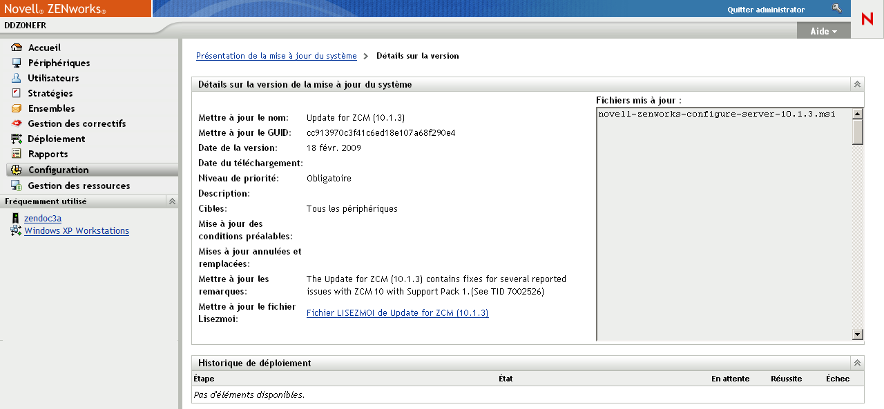 Dans le Centre de contrôle ZENworks®, cliquez sur dans le volet de gauche, puis sur l'onglet .