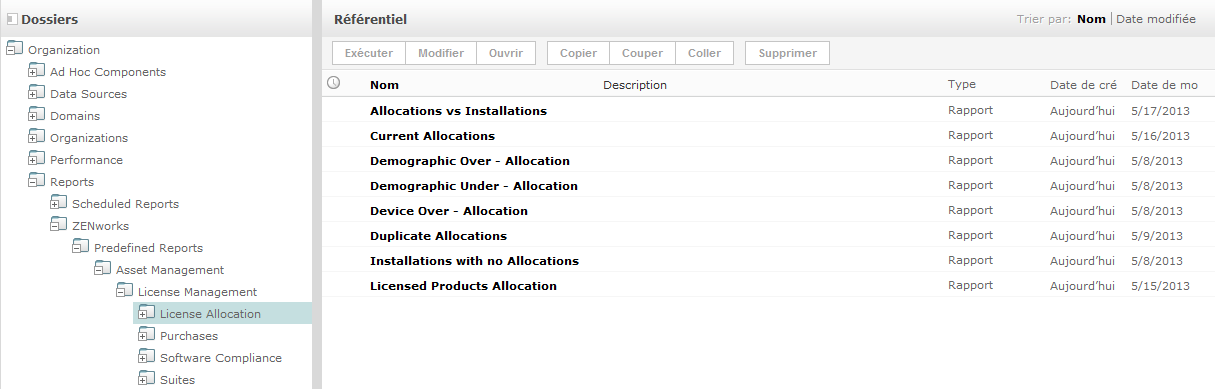 • Pour exécuter et afficher le rapport, cliquez sur son nom.