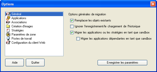 Consultez les sections suivantes pour obtenir un complément d'informations sur la configuration des options de migration à l'aide de l'utilitaire de migration :