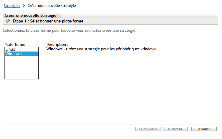 Sur la page Sélectionner la catégorie de stratégie, sélectionnez , puis cliquez sur .