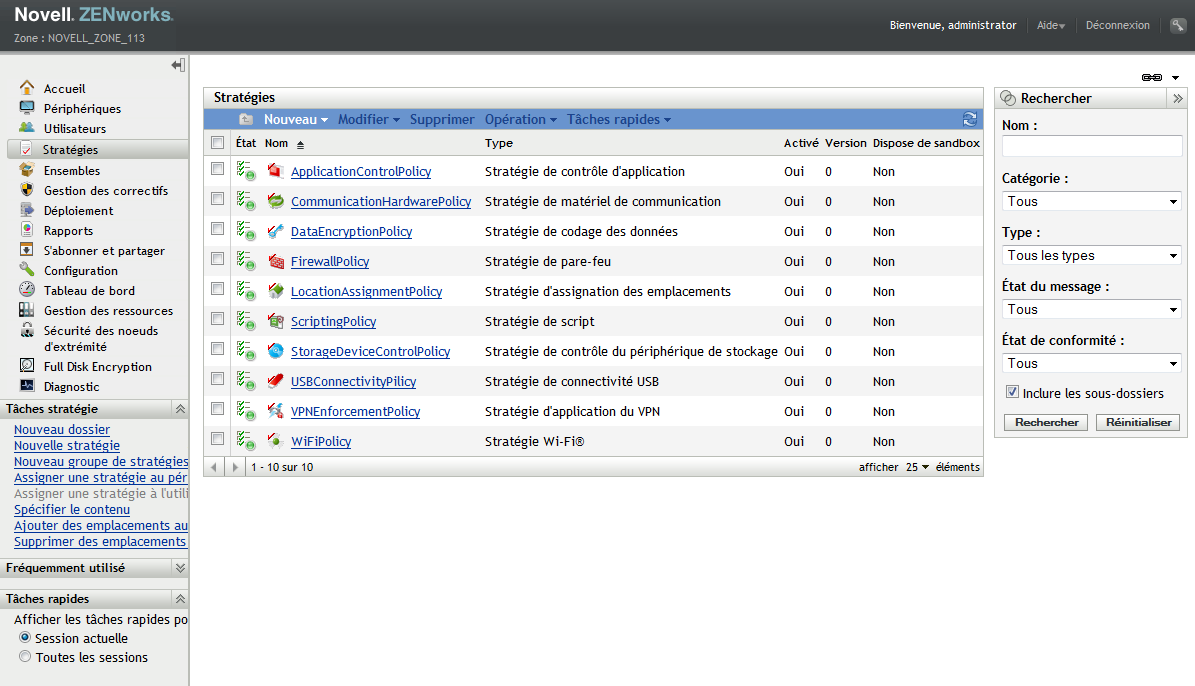 Après avoir créé une stratégie, vous devez l'appliquer à des périphériques en l'assignant à ces derniers ou à leurs utilisateurs.
