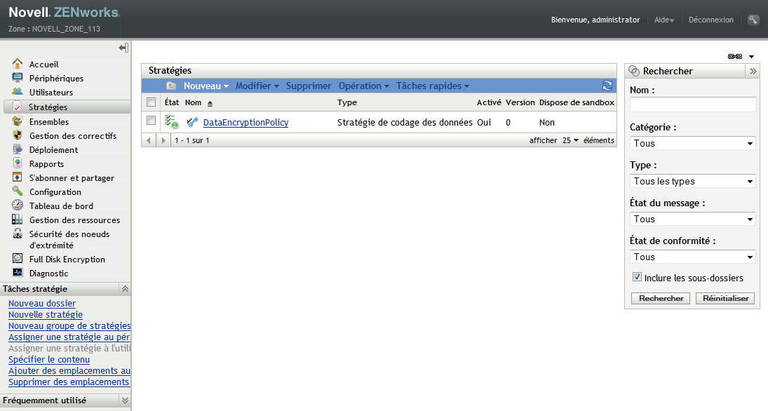 Après avoir créé la stratégie de codage de disque, vous devez l'assigner à des périphériques.