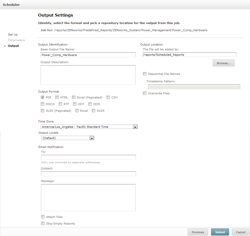 REMARQUE :avant de planifier un rapport, vous devez configurer le serveur de messagerie sortant. Pour plus d'informations sur le serveur de messagerie sortant, consultez le Guide d'installation de ZENworks Reporting 5.