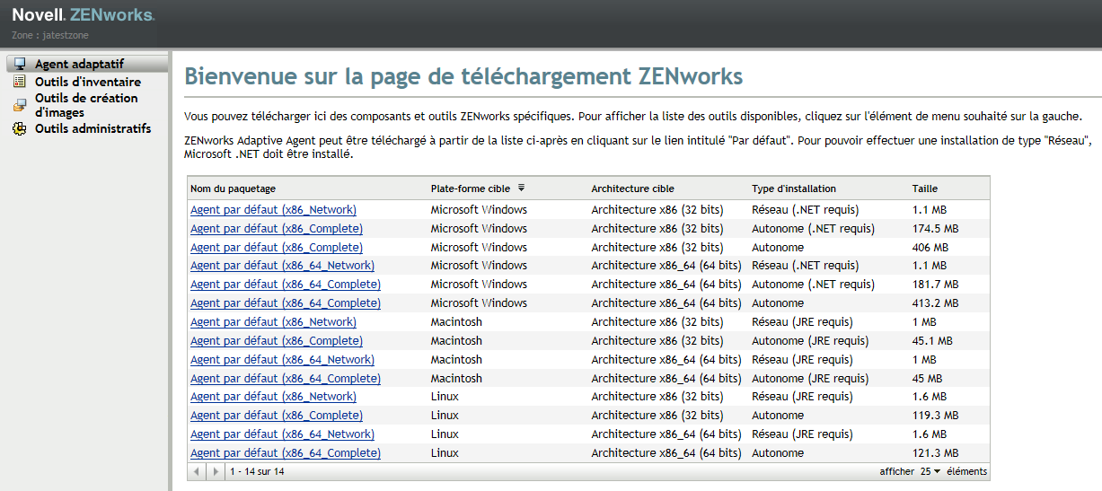 Plutôt que de demander à un serveur ZENworks de déployer l'agent adaptatif sur un périphérique, vous avez la possibilité de télécharger manuellement le paquetage de déploiement de l'agent adaptatif sur le serveur et de l'installer vous-même.