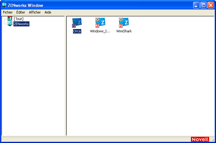 La fenêtre ZENworks est une fenêtre autonome qui permet d'accéder aux ensembles. Vous pouvez la lancer à partir du menu Démarrer (menu Démarrer > Programmes > Novell ZENworks > ZENworks Application Window).