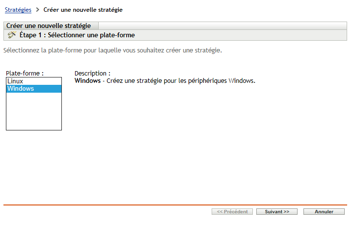 Sur la page Sélectionner une plate-forme, sélectionnez Windows, puis cliquez sur Suivant.