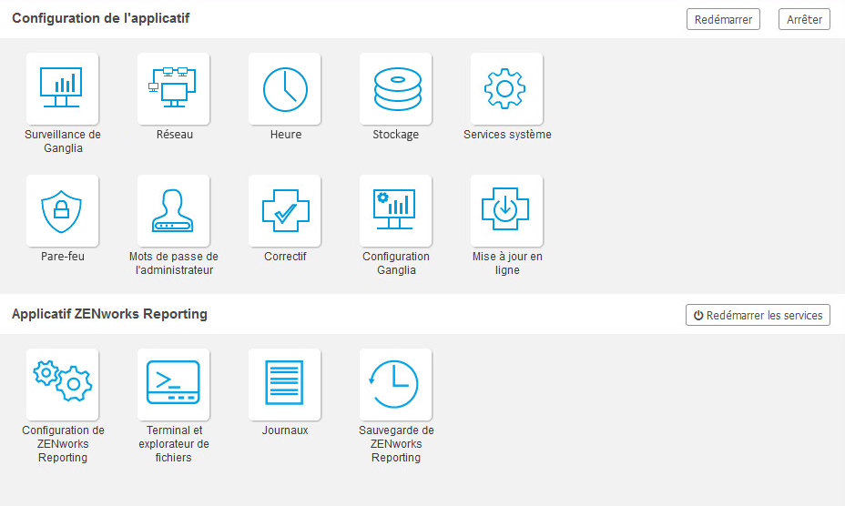 Redémarrer l'applicatif et ZENworks Reporting