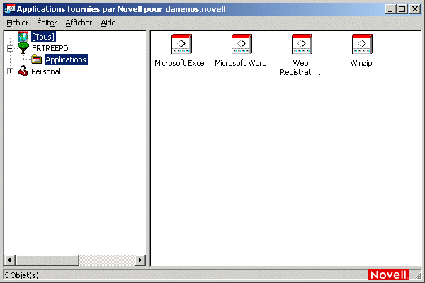 Arborescences eDirectory : chaque arborescence contient les applications, situées dans l'arborescence, qui ont été associées à l'utilisateur ou au poste de travail. La fenêtre d'application n'affiche que les arborescences auprès desquelles l'utilisateur et le poste de travail sont authentifiés.
