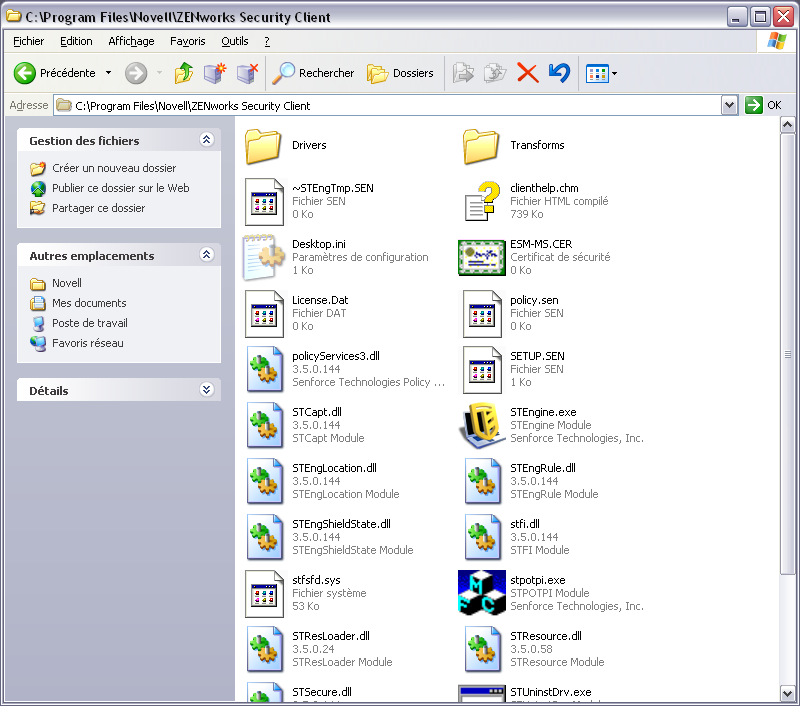 Localisez l'image MSI créée et ouvrez le dossier "\program files\Novell\ZENworks Security Client\"