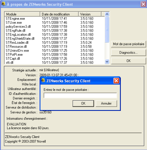 Endpoint Security Client 3.5 dispose de la fonction Mot de passe prioritaire qui désactive temporairement la stratégie de sécurité actuelle pour autoriser les activités nécessaires. L'administrateur de sécurité ne distribue une clé de mot de passe à usage unique qu'en cas de besoin et doit être informé de tous les problèmes liés à la stratégie de sécurité. Une fois le délai de la clé de mot de passe expiré, la stratégie de sécurité protégeant le noeud d'extrémité est restaurée. Le redémarrage du noeud d'extrémité restaure également les paramètres de sécurité.