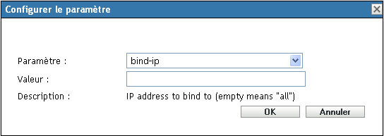 Valeur : si le paramètre sélectionné requiert une valeur spécifique, sélectionnez-la dans la liste déroulante. Si le paramètre sélectionné ne requiert pas de valeur spécifique, saisissez la valeur dans la zone Valeur.
