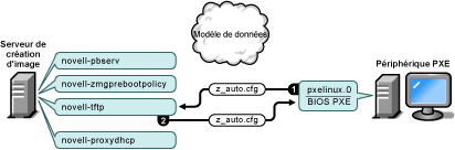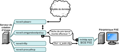 Une fois le programme d'amorçage des services de pré-lancement téléchargé et exécuté, le périphérique vérifie novell-zmgprebootpolicy à la recherche d'un travail de création d'image à exécuter.