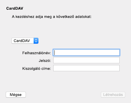 A Mac Kapcsolatok alkalmazásban válassza a Kapcsolatok > Fiók hozzáadása lehetőséget.