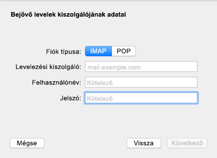 Adja meg az IMAP-kiszolgálót. A felhasználónevének és a jelszavának már szerepelnie kell a megfelelő mezőben.